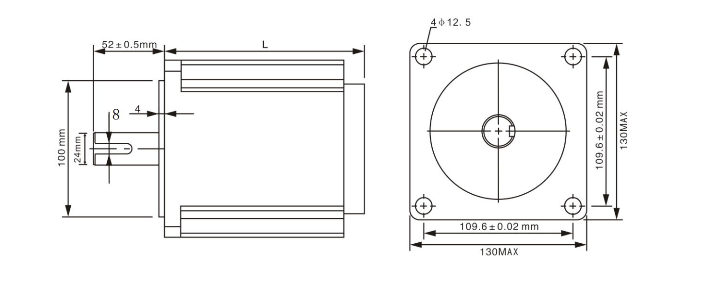 型号 | 步距角(°) | 保持转矩(N.m) | 相电流(A) | 相电感(mH) | 相电阻(Ω) | 转子惯量(g.m²) | 引线数(No.) | 电机重量(Kg) | 机身长L(mm) | 轴径(mm) |
